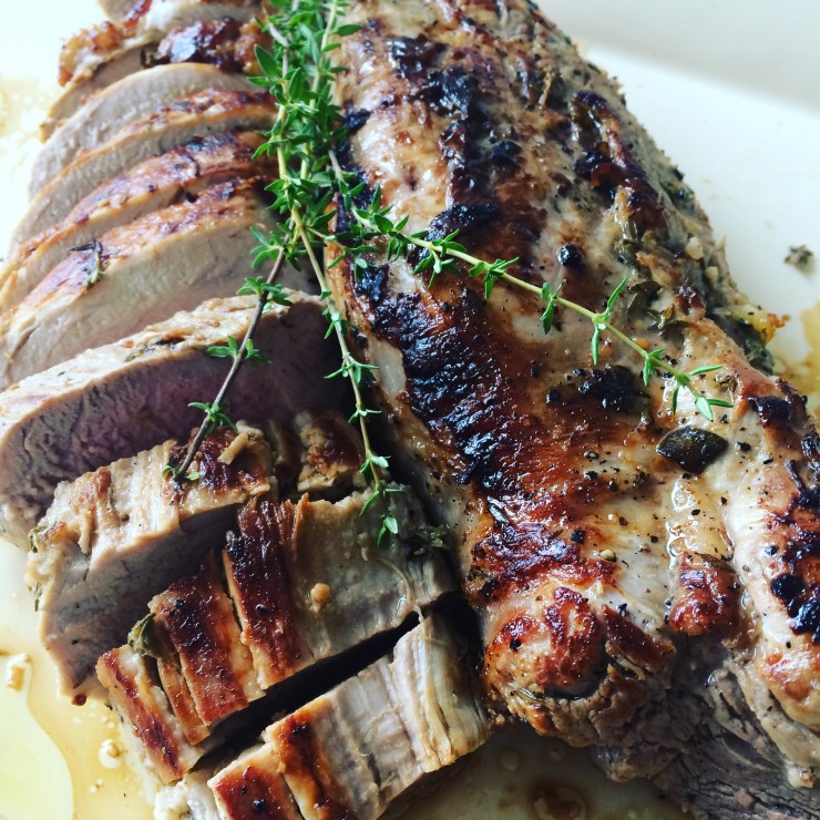 Discard marinade and place tenderloins on paper towels to remove excess liquid, but you can leave herbs stuck to meat. Season with salt and pepper.