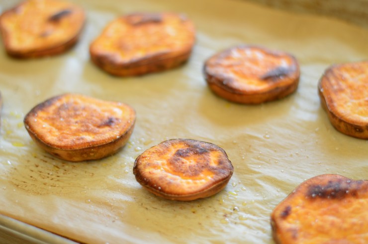 2 medium sized sweet potatoes, sliced 1/4-1/2″ thick